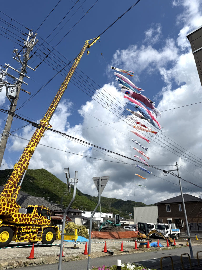 依頼者の方がクレーン鯉のぼりを始めたきっかけは、幼少期の原体験にあります 子どもの頃、端午の節句が近づくと、市内には大きなこいのぼり🎏を揚げる家庭がいくつもあり、その姿に胸を躍らせながら自転車🚲で見て回った日々 しかし近年は住宅事情🏘️や少子化の影響で、町中で大きな鯉のぼりを見る機会が減り、さみしさを感じていたそうです 「童謡にあるような“屋根より高い鯉のぼり”を、今の子どもたちにも見せたい✨」 そんな想いから、建設業で培ったノウハウを活かし、クレーンによる大規模掲揚を昨年実現されました💡