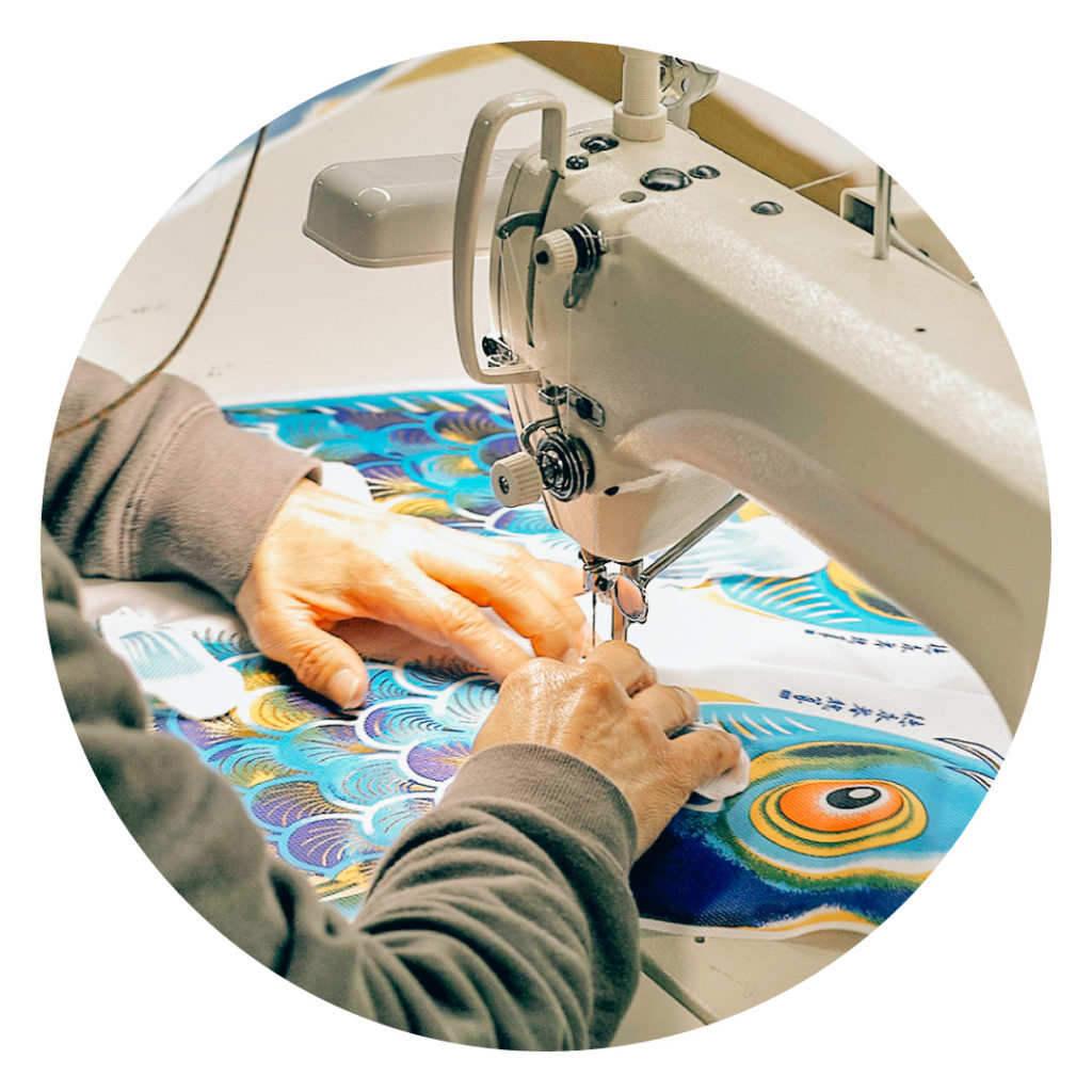 私たちは、80年ものこいのぼり製造で培った耐候設計と大型縫製インフラを基盤に、